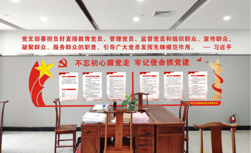 广西思贝律师事务所积极推进两新组织党支部标准化规范化建设,党建工作亮点纷呈,成绩斐然。一是认真按照南组通〔2018〕45号文要求抓党建示范点创建,党支部全面研究部署,律所从人财物等方面全力支持。二是坚持政治引领。将习近平新时代中国特色社会主义思想及加强党的领导写入律所章程,认真开展主题教育活动并取得好成效。三是组织建设和阵地建设同时推进。对照“十六有”示范点提升评定标准抓创建,建立健全党支委领导班子;设置20平方米的党员活动中心和党建文化长廊,打造了以党建为主的荣誉展示柜,制作了宣传册、PPT等宣传资料。四是党支部和党员律师在法援、公益扶贫、抗疫等方面表现突出。借助团队化营运优势,每年律所都会配置10-20万专项党建经费,党员律师根据支部安排,把更多经费用于扶贫,助学等贫困生资助中去,近年以来,以支部名义,先后资助了马山、邕宁、田林贫困生合计约150人,共计款项15万左右,充分发挥了党员先锋模范作用。五是培养党员律师为合伙人合伙人,三名党员见习合伙人在业务执行、管理团队建设、大客户维护等方面在全所律师中树立了党员标杆作用。