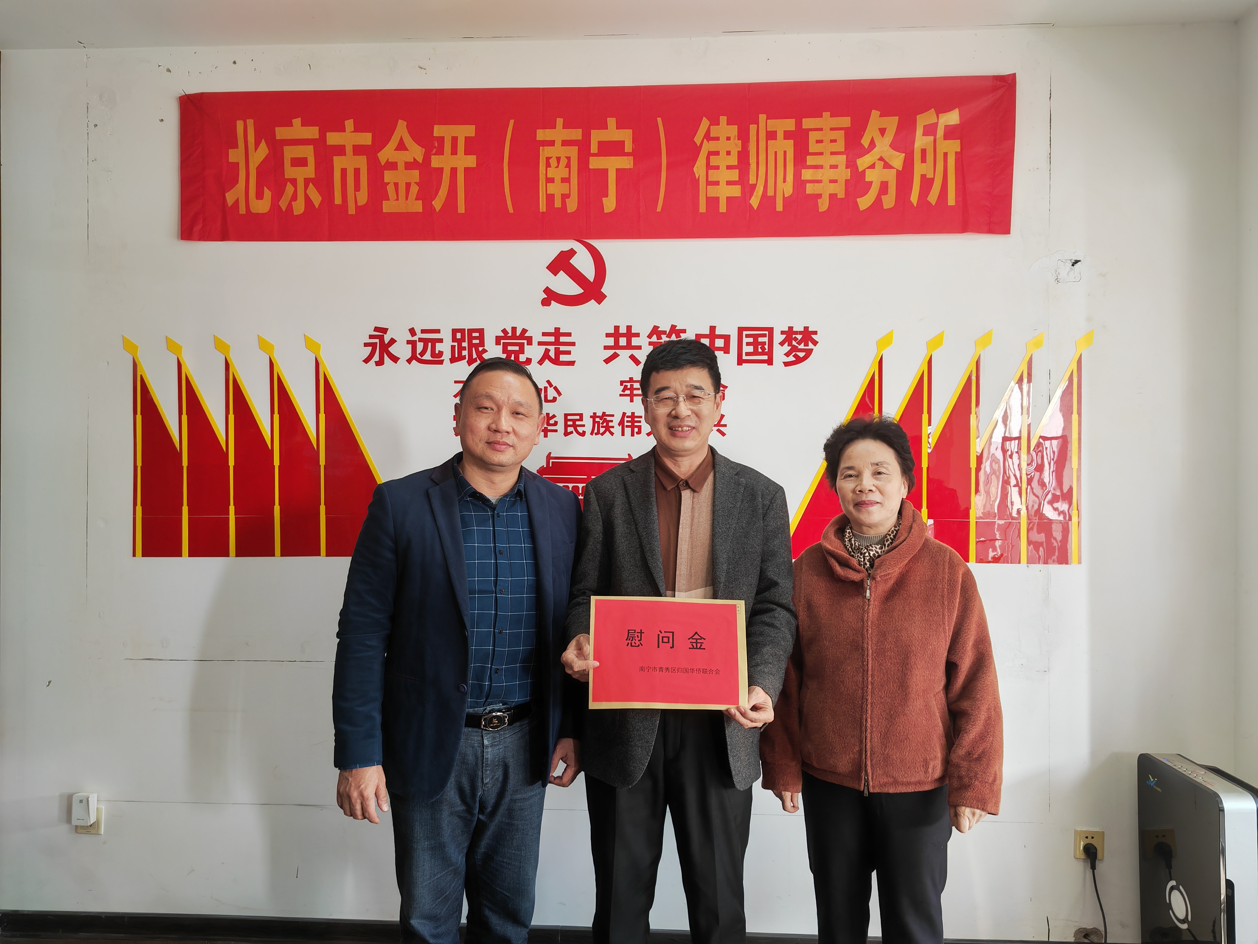 兔年春节刚过,2023年1月31日下午,南宁市青秀区归国华侨联合会主席林海带队一行莅临北京市金开(南宁)律师事务所“为侨法律服务站”慰问、座谈、指导,与为侨法律服务站团队律师成员深刻交流座谈,就兔年如何更好开展为在桂侨胞、侨企法律服务提出了指示和建议。