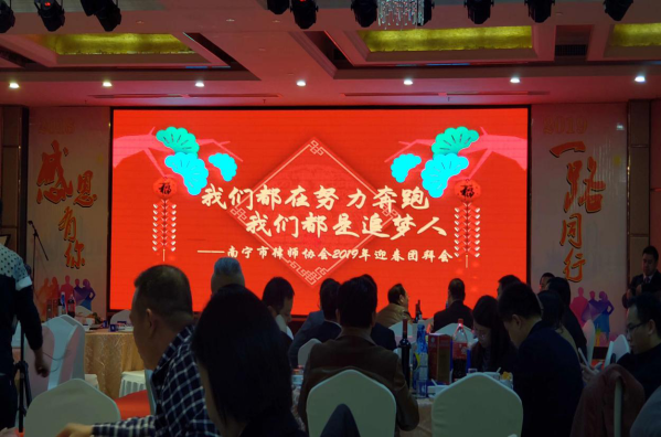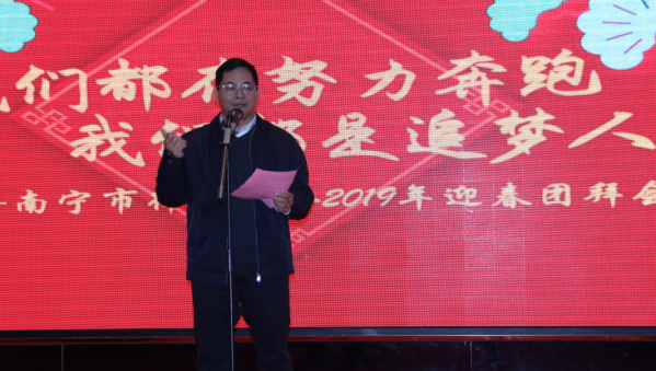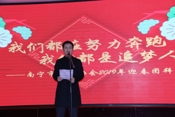 1月25日下午,围绕“我们都在努力奔跑,我们都是追梦人”的主题,南宁市律师协会2019年迎春团拜会在南宁市相思湖国际大酒店隆重举办。南宁市司法局党组书记、局长黄有光,南宁市司法局党组成员、南宁市律师行业党委书记韦玉流及相关部门的领导,南宁市律师行业党支部书记、第五届理事会理事、各律师事务所主任、新闻媒体记者等250多名律师及相关人员一起观看了这场精彩的演出。