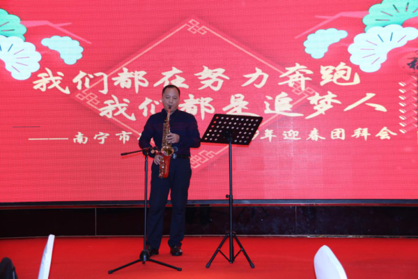 广西志明律师事务所主任荣宁献上一曲电吹管独奏《我爱你中国》,拉开了律师协会迎春团拜会序幕!晚会节目精彩纷呈,舞蹈、歌曲、电吹管独奏、萨克斯演奏等节目赢得大家阵阵掌声。
