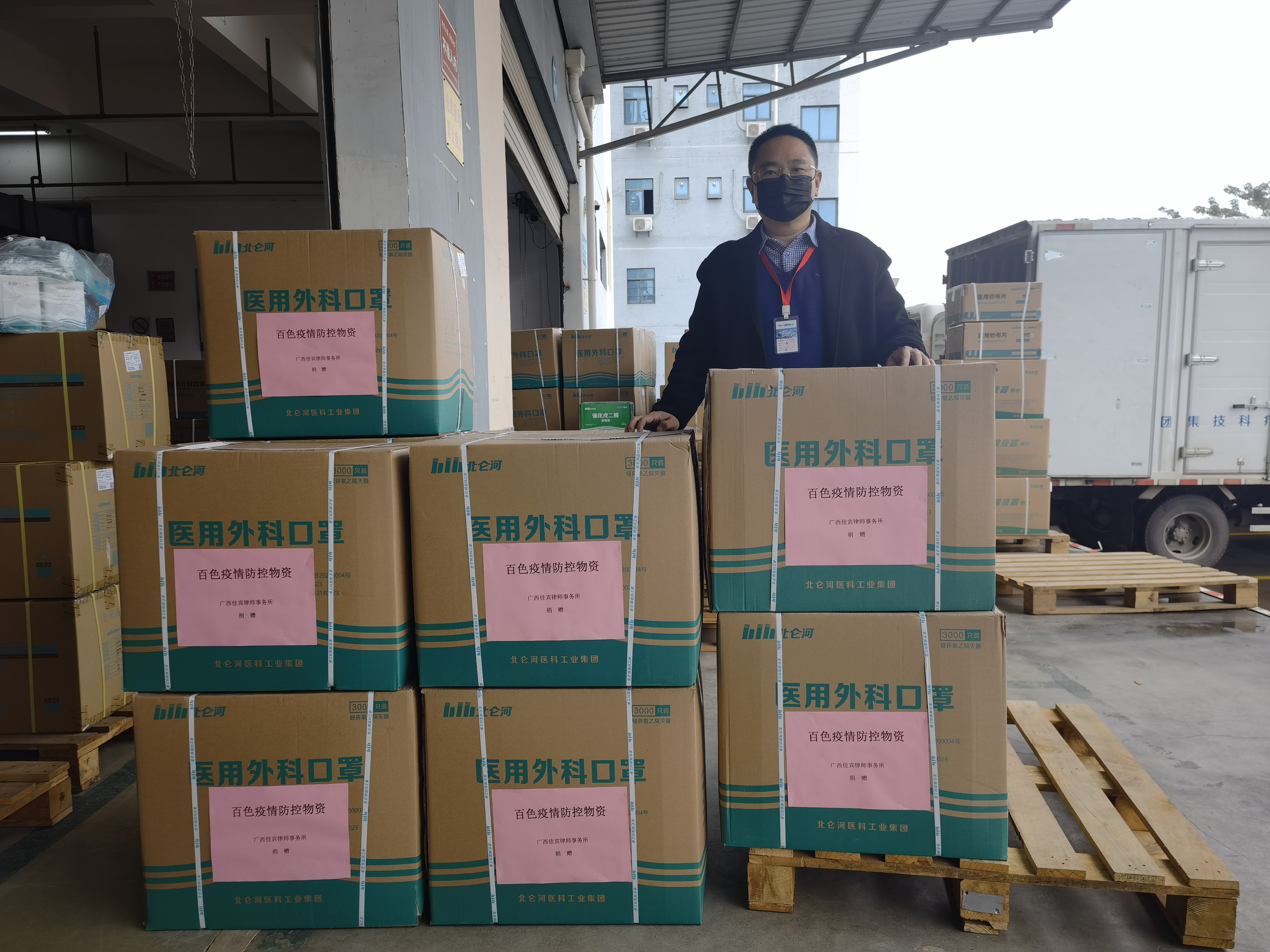 2月11日,饱含各位爱心律师、人士美好心愿的十五件共45000个医用外科口罩已送达广西区红十字会抗疫物资接收点,发往百色疫区!