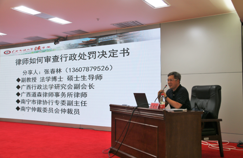 新修订的行政处罚法将于2021年7月15日起施行,为深入学习新行政处罚法,进一步提升我市律师行政专业水平和为政府机关提供法律服务的能力,2021年7月10日上午,南宁市律师协会行政专业委员会在南宁市司法局举办新行政处罚法专题培训及研讨会。广西民族大学副教授、南宁市律师协会行政专业委员会副主任张春林受邀作《律师如何审查行政处罚决定书》专题培训,南宁市律师协会副会长陆仲坤为本次培训致辞,行政专业委员会主任马艺珊、部分委员及我市律师共60多人参加了培训。培训会由南宁市律师协会行政专业委员会主任马艺珊主持。