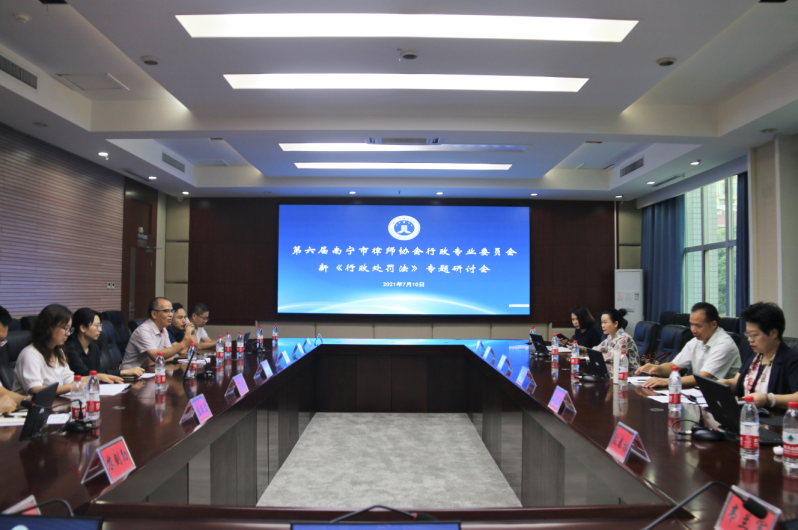 培训结束后,行政专业委员会紧接着召开年中工作总结会议及新《行政处罚法》专题研讨会,南宁市律师协会副会长陆仲坤出席会议,行政专业委员会主任马艺珊、部分委员参加会议。