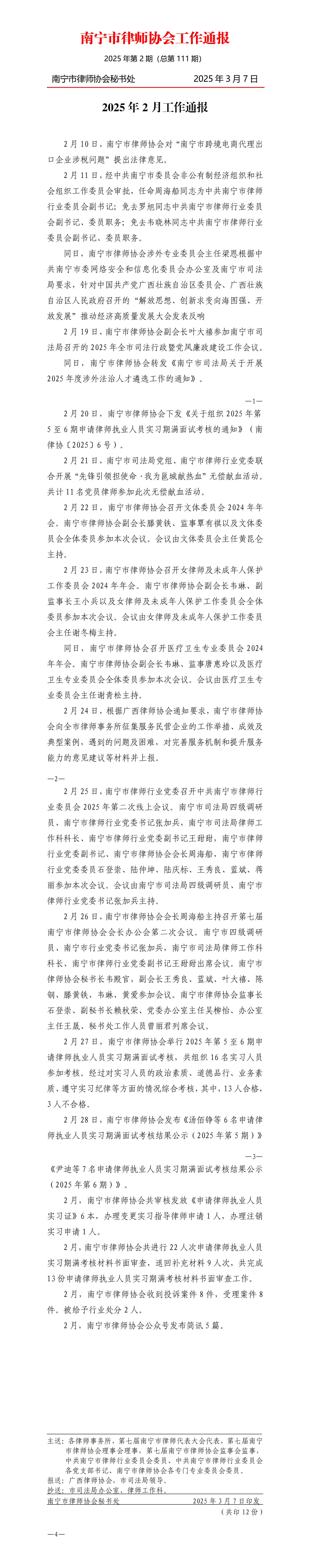 南宁市律师协会2025年2月工作通报
