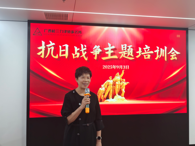 2025年9月3日上午,为纪念中国人民抗日战争暨世界反法西斯战争胜利80周年,广西桂三力律师事务所组织合伙人、专职律师、实习律师及行政人员开展了一场意义深刻的抗日战争主题学习培训活动,此次活动旨在传承和弘扬伟大爱国主义精神,增强全体人员的使命感和责任感。