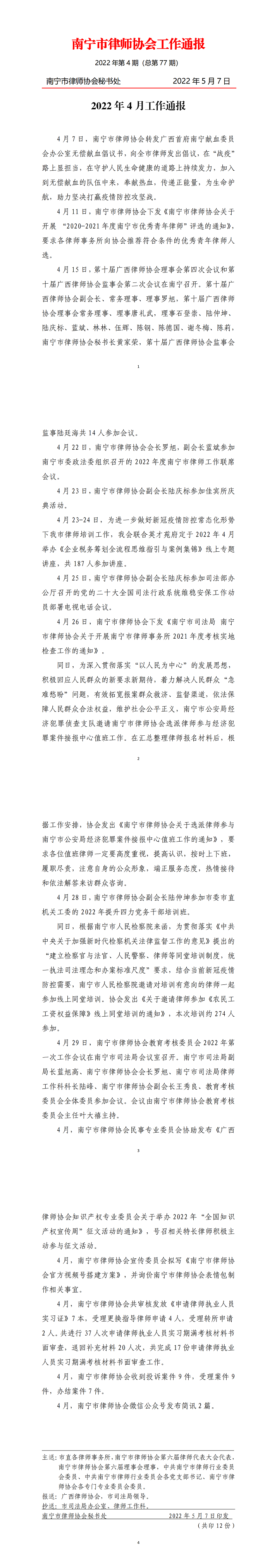 南宁市律师协会2022年4月工作通报