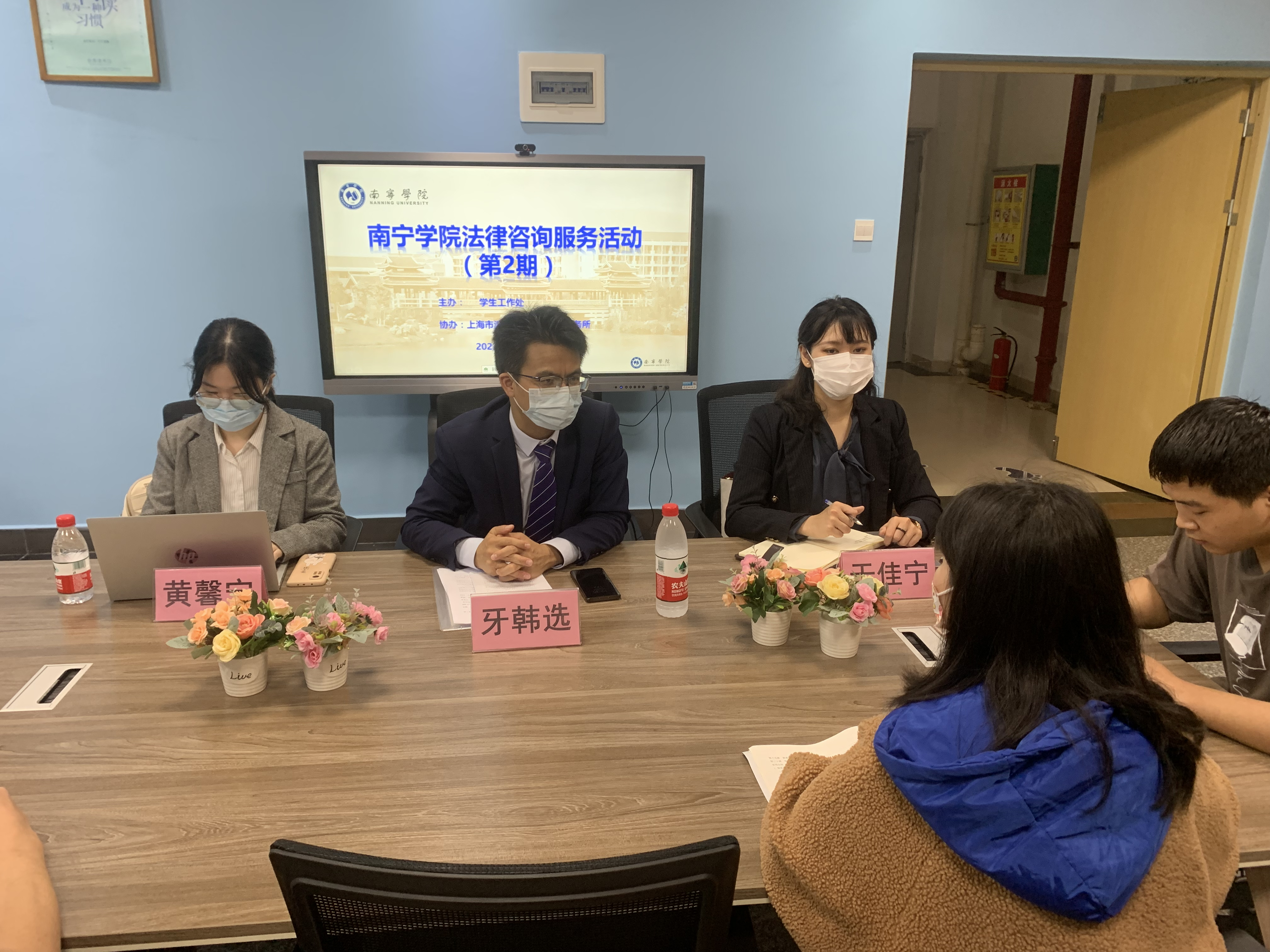 上海市汇业(南宁)律师事务所驻南宁学院大学生法律咨询服务站自成立以来,积极为在校师生开展普法宣传及法律援助活动。为进一步加强校园法制宣传教育,丰富师生法律知识,创建和谐校园、平安校园。2022年4月21日晚,汇业(南宁)律师事务所牙韩选律师、于佳宁、黄馨宁一行到南宁学院开展第二期普法沙龙活动,为学生进行法律问题解答。南宁学院学工处刘波副处长、思政科负责人文有森及十多名学生代表参加本次活动。