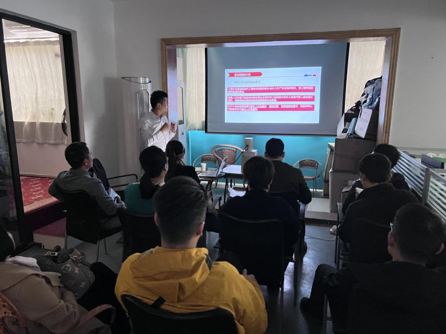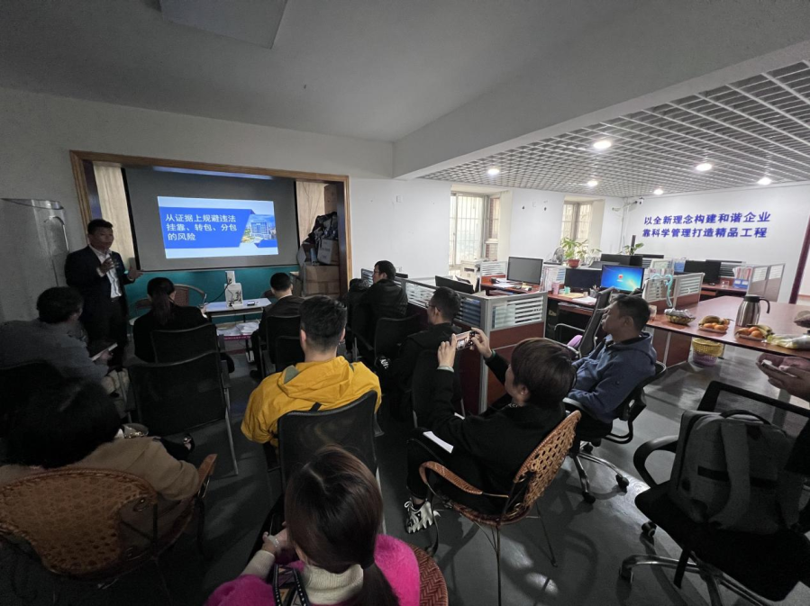 本次培训持续近两个小时,朱定民律师从挂靠、转包、分包的法律规定出发,逐项进行解读,并结合自身经手办理的大量实务案例,从证据的角度分析建设工程被挂靠企业法律风险的防范措施。朱定民律师特别指出,对于建工类企业而言,法律风险的防范意识应更多下沉到项目管理的一线经手人员,纠纷发生后律师在法庭上争议的内容很大程度取决于一线人员在项目运营中经手的材料和细节。