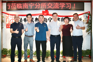近日,法制盛邦三亚分所主任刘剑川律师、副主任王鹏律师、张世煜律师一行莅临南宁分所交流,南宁分所主任王小兵律师、执行主任梁瑞迎律师、副主任王心卓律师、杨晓梅律师等热情接待,双方就律所发展相关事宜展开友好沟通,并实地参观南宁分所办公与文化空间。