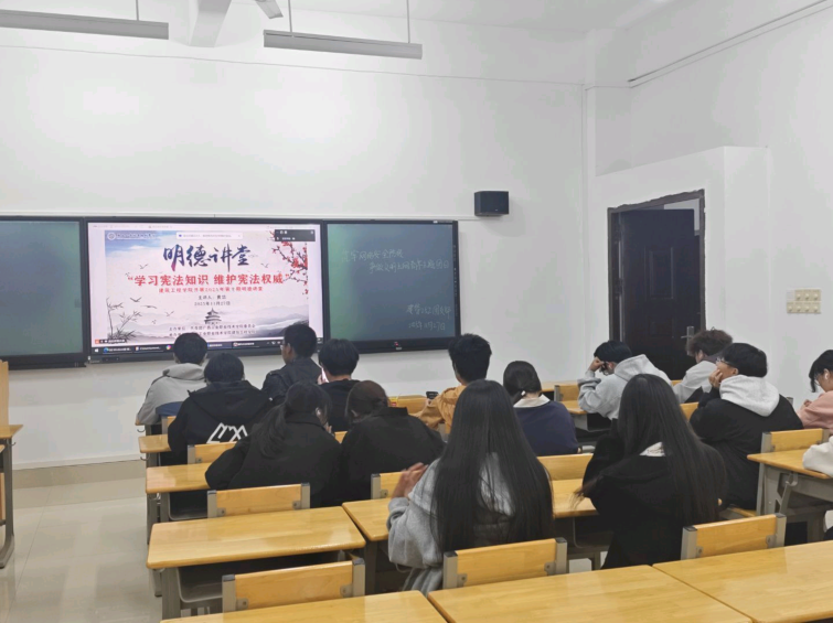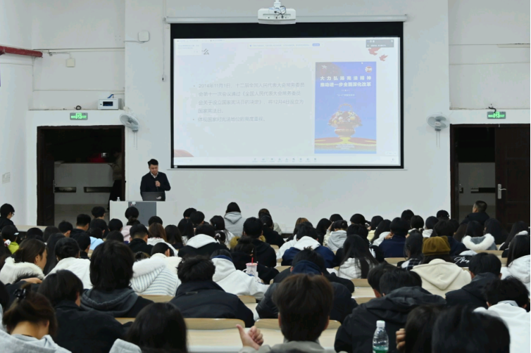 11月27日晚,黄喆副主任再次受邀走进广西工业职业技术学院,在由学院团委主办、建筑工程学院承办的2025年“明德讲堂”活动中,为1000余名师生带来一场“学习宪法知识 维护宪法权威”的专题讲座。黄喆副主任以“宪法与青年成长”为主线,结合校园生活场景与社会热点案例,深入浅出地解读宪法赋予公民的基本权利与义务,并通过互动问答、情景模拟等形式激发青年学生的法治思维。讲座现场气氛热烈,参加的同学们都感受到“宪法不再是抽象条文,而是与自身权益息息相关的行动指南”。此次活动不仅为高校法治教育注入专业力量,更在青年群体中厚植了尊崇宪法、信仰法治的价值观。