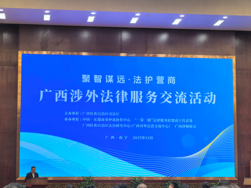 12月4日下午,潘冠霖主任参加由广西壮族自治区司法厅主办、中国一东盟商事仲裁协作中心 “一带一路”法律服务联盟南宁代表处、广西壮族自治区法治研究中心(广西对外法治交流中心)、广西律师协会承办的“聚智谋远·法护营商”广西涉外法律服务交流活动。会议共分三个专题交流:企业“走出去”法律风险防范,面向东盟涉外法律服务人工智能场景应用开发,东盟投资与涉外法律服务机遇深度挖掘。潘冠霖主任全程认真参与会议并听取各方交流后表示:“在国家宪法日参与涉外交流,让我更深刻体会到宪法精神不仅是国内法治的基石,也是中国律师参与国际法治合作的通行证”。