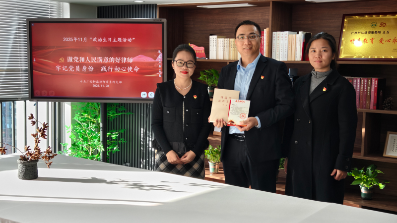 此次活动通过“理论+实践+榜样”的多元形式,既深化了党员对党的创新理论的理解,又通过榜样引领激发了干事创业热情。中共广西析法律师事务所支部将持续以高质量党建引领高质量发展,为法治建设与社会治理注入红色动能。