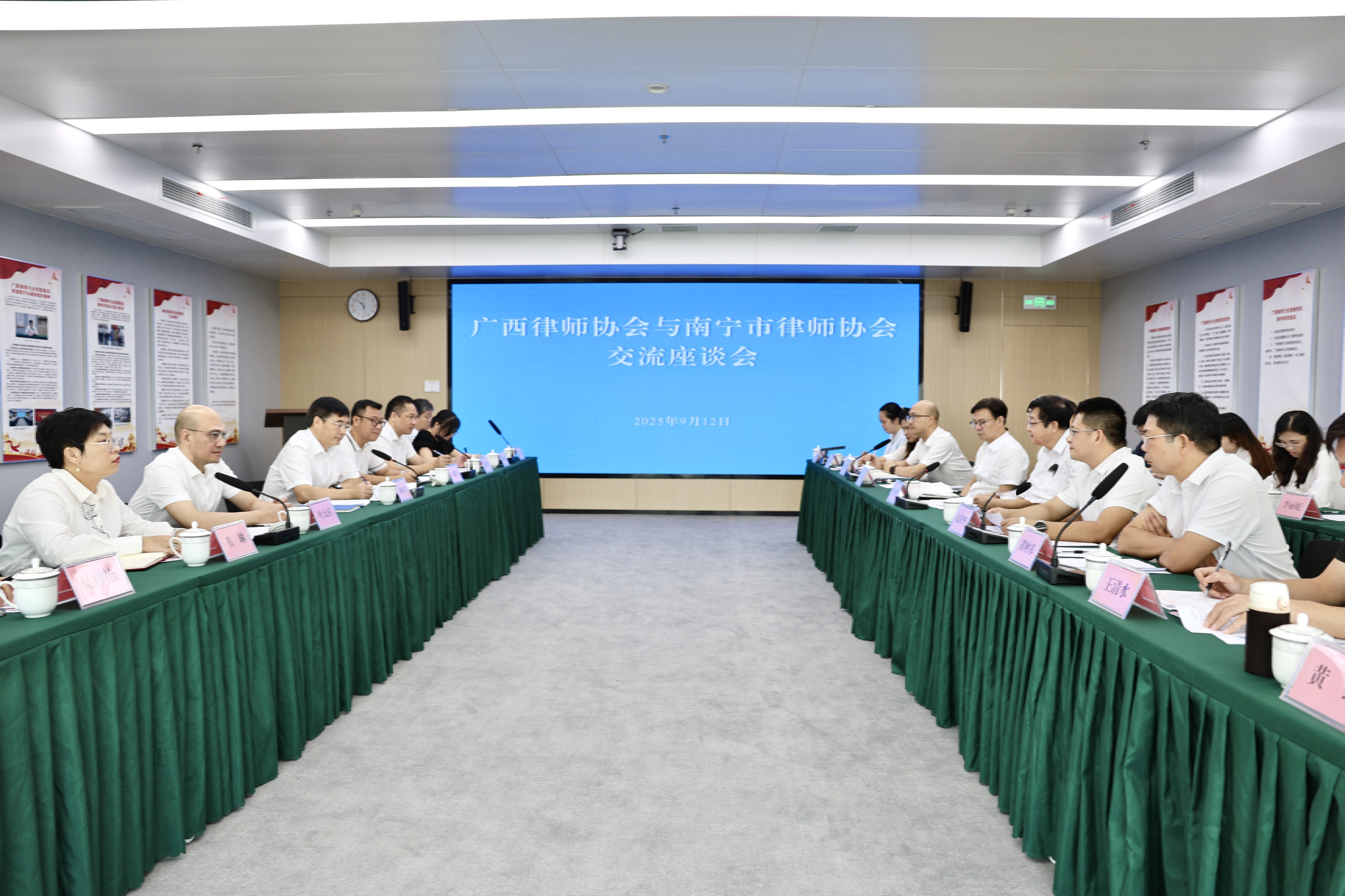 9月12日上午,南宁市律师协会一行赴广西律师协会开展工作汇报交流座谈会,旨在全面梳理阶段性工作成效,围绕行业发展关键问题寻求指导与支持。广西律师行业党委副书记、广西律师协会会长李安华,广西律师协会秘书长农锋华,南宁市律师行业党委副书记、南宁市律师协会会长周海船等两地律协核心班子成员及相关部门负责人参会。