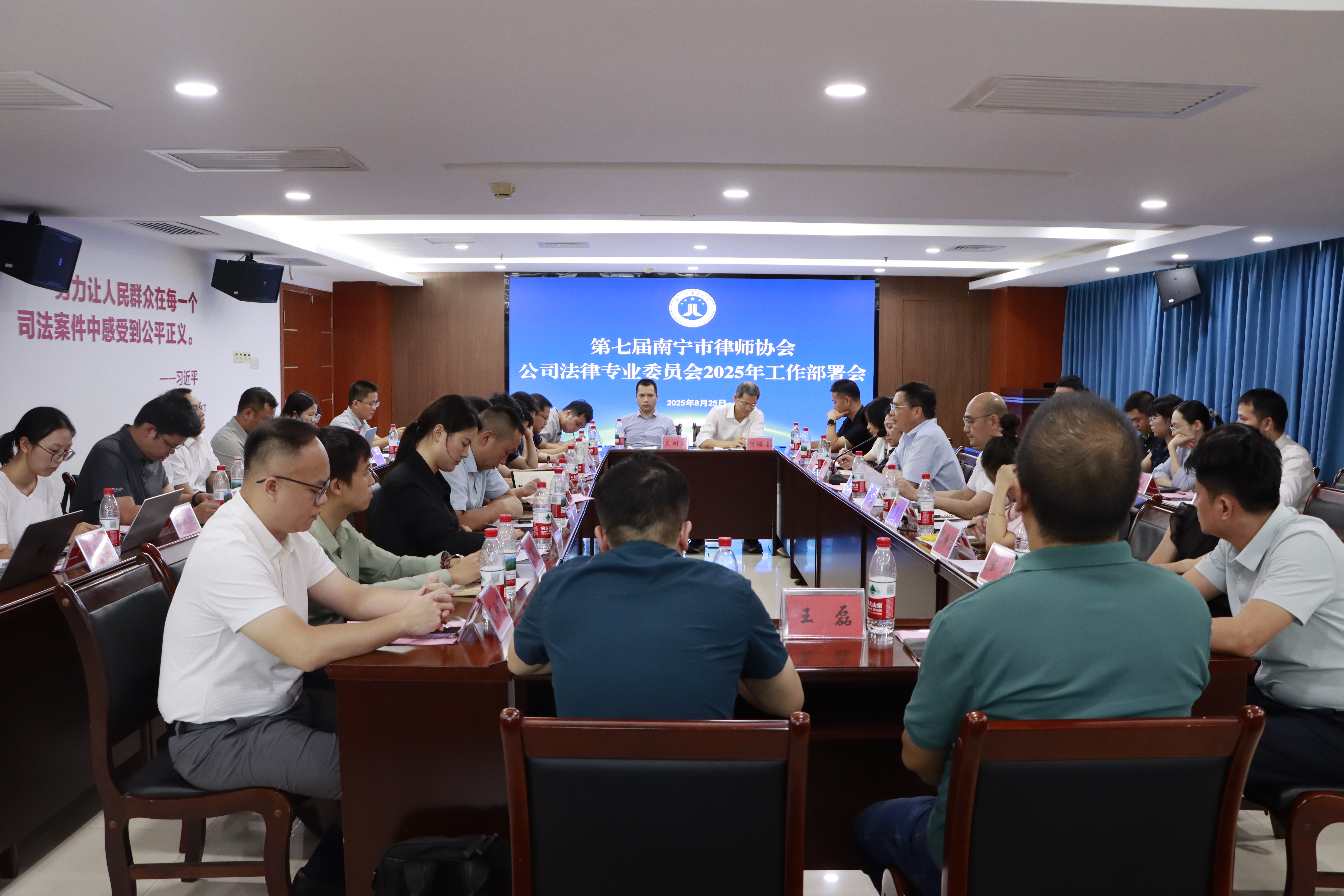 2025年8月25日下午,第七届南宁市律师协会公司法律专业委员会2025年第一次全体会议在南宁市律师协会顺利召开,本次会议的主题是“规划部署2025年度工作任务,全面提升南宁市律师行业公司法律专业水平及企业法律服务质量”。南宁市律师协会会长周海船、副会长叶大禧、监事会监事覃有祺出席会议。本次会议由公司法律专业委员会主任肖敏主持。