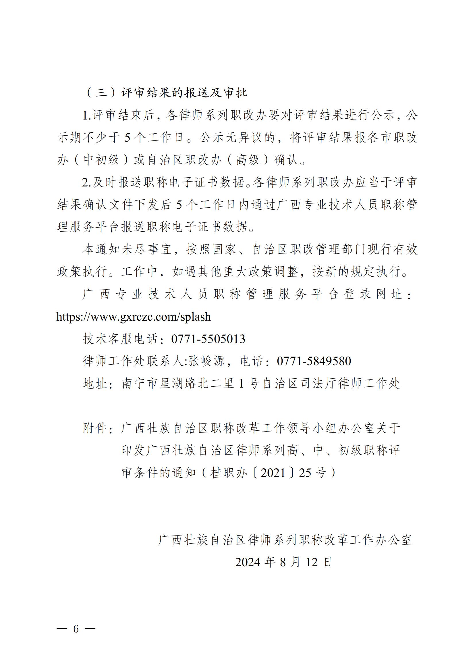 附件:广西壮族自治区职称改革工作领导小组办公室关于印发广西壮族自治区律师系列高、中、初级职称评审条件的通知(桂职办〔2021〕25 号)